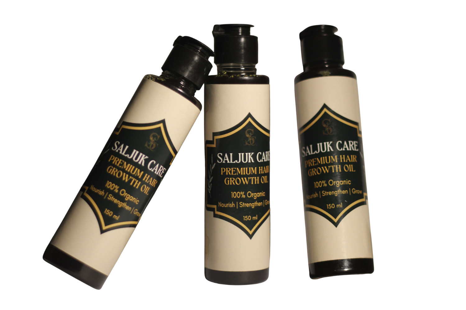 Saljuk Care Premium Hair Growth Oil blends Ayurvedic herbs like Amla, Reetha, Shikakai, and Hibiscus with nourishing Mustard, Coconut, Sesame, and Castor oils. It strengthens roots, reduces hair fall, and promotes faster, healthier growth. 100% natural, chemical-free care for shiny, voluminous hair.